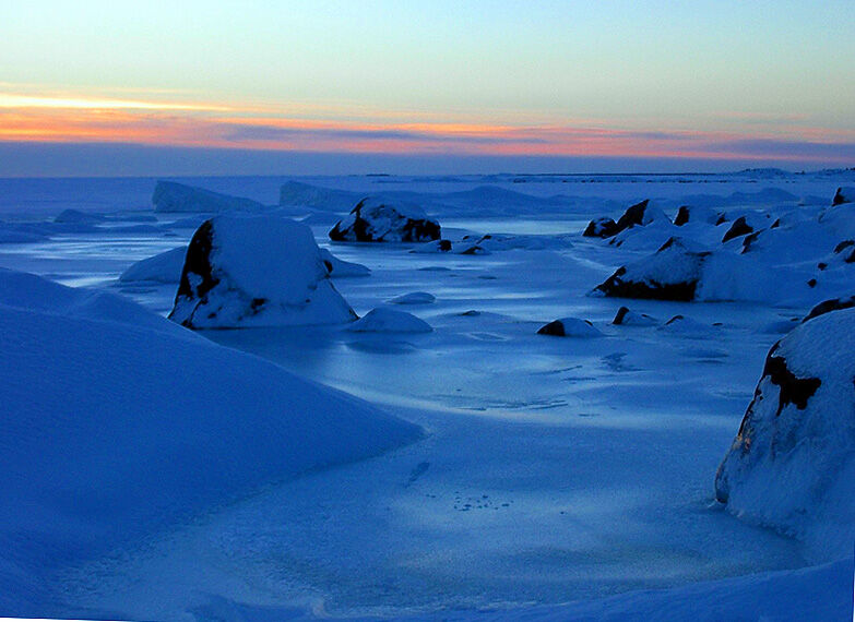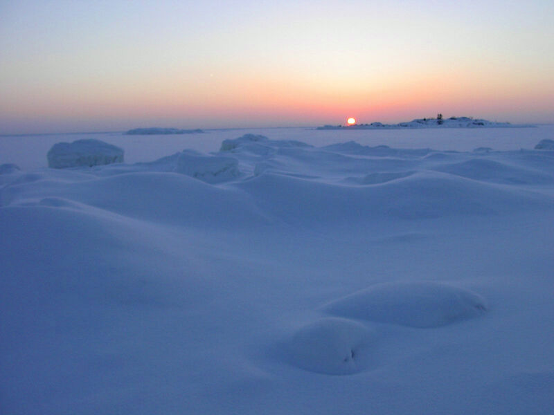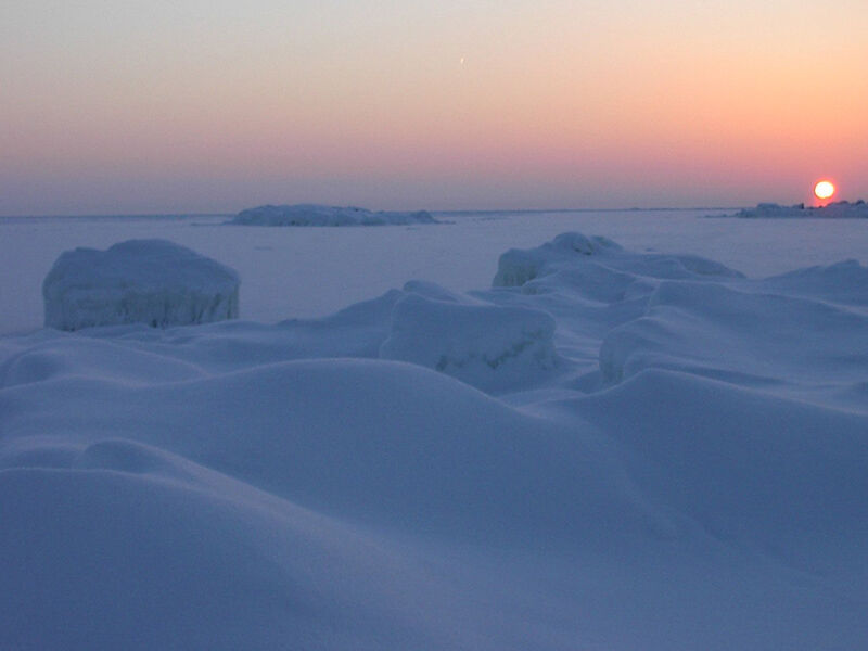 The Sun is going down, and The Sun doesn't warm up. The Temperature is a lot of below The Zero Celcius Degrees.